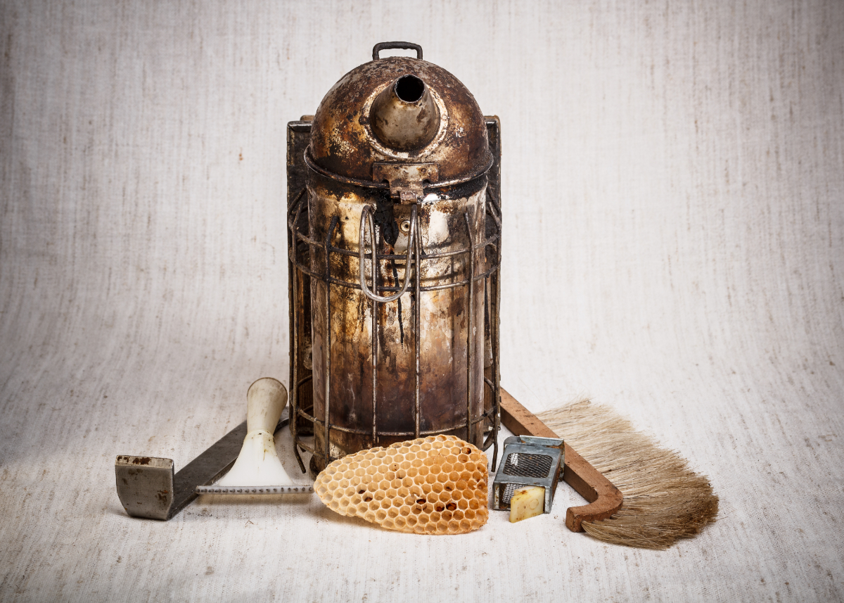 1. Der Smoker: Rauch ist die „Sprache“, mit der wir Bienen Ruhe signalisieren. Wenn Rauch in die Beute geblasen wird, glauben die Bienen an einen Waldbrand, füllen ihre Honigmägen mit Vorräten und sind danach träge und friedlich. Investiere in ein Modell aus Edelstahl mit Hitzeschutzgitter und einem stabilen Blasebalg.